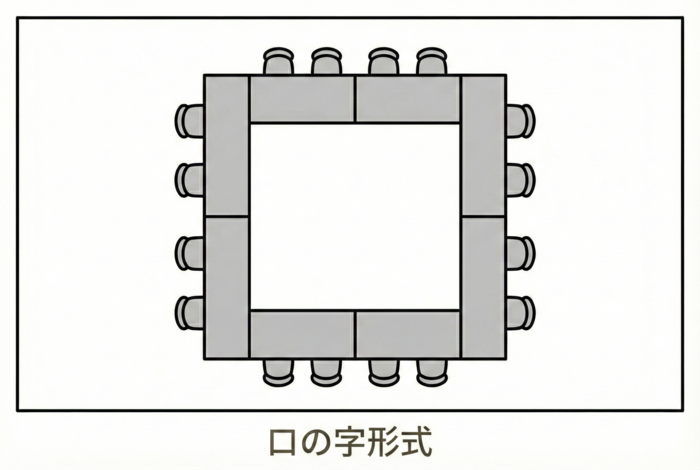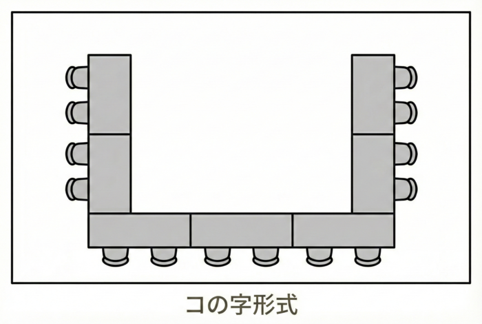 ロの字形式コの字形式は、視線が内側に向くことで「今、私たちは一つの問題に向き合っている」という連帯感を生み出します。
