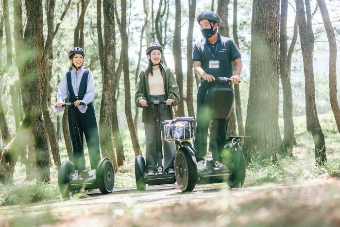 インストラクターの案内で、リゾート敷地内や黒松林の中をセグウェイで散策。