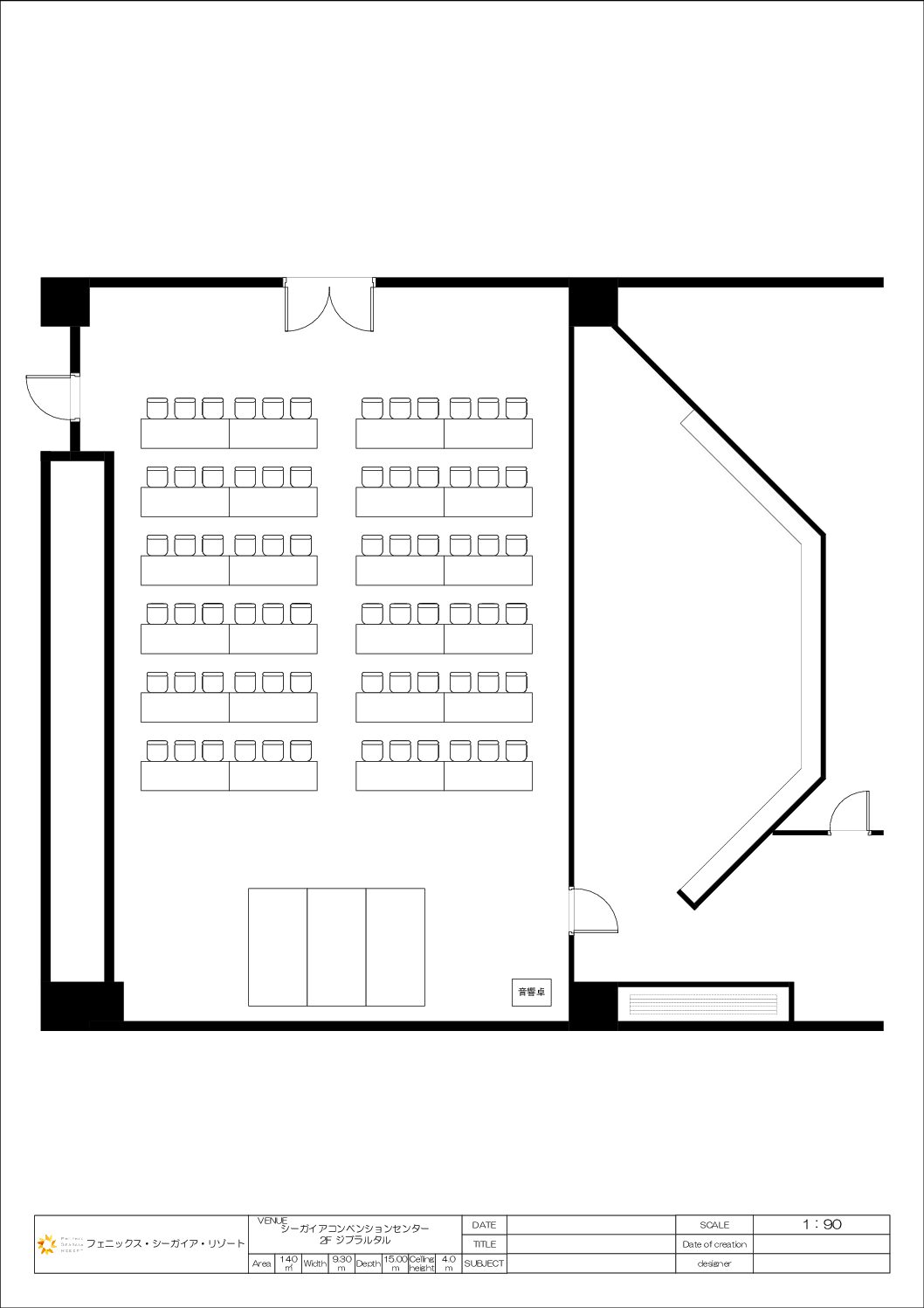 「ジブラルタル」は、シーガイアコンベンションセンターの2階に位置する、広さ140㎡の小会議室です。ディナー形式、立食ビュッフェ、着席ビュッフェなど、様々なイベントに対応できる柔軟なレイアウトが可能です。