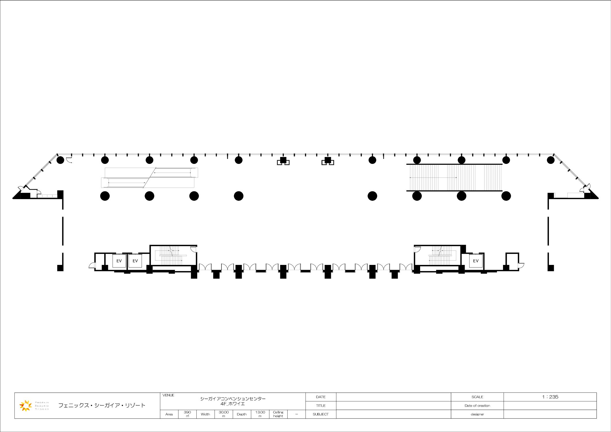 「4階ホワイエ」は、シーガイアコンベンションセンター4階に位置する広大な空間で、総面積390㎡の広さを誇ります。