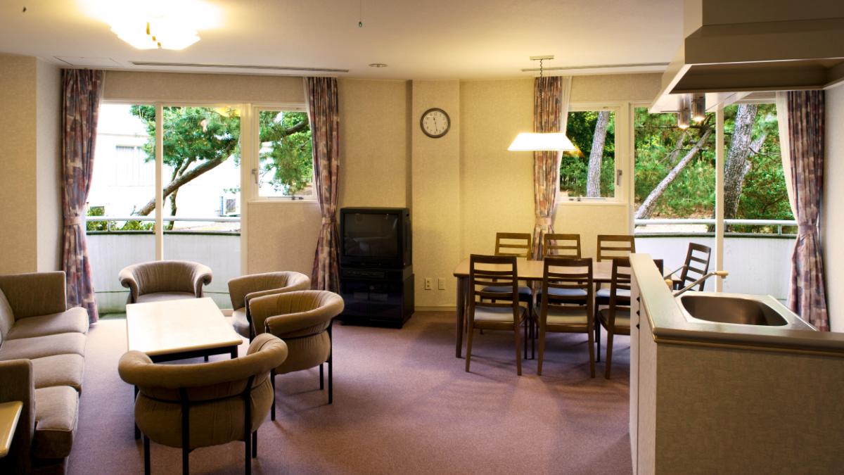 全室キッチン・洗濯乾燥機完備のコンドミニアム。松林に囲まれた、別荘感覚のコテージ。仲間とのリラックスしたリゾートステイをご堪能いただけます。