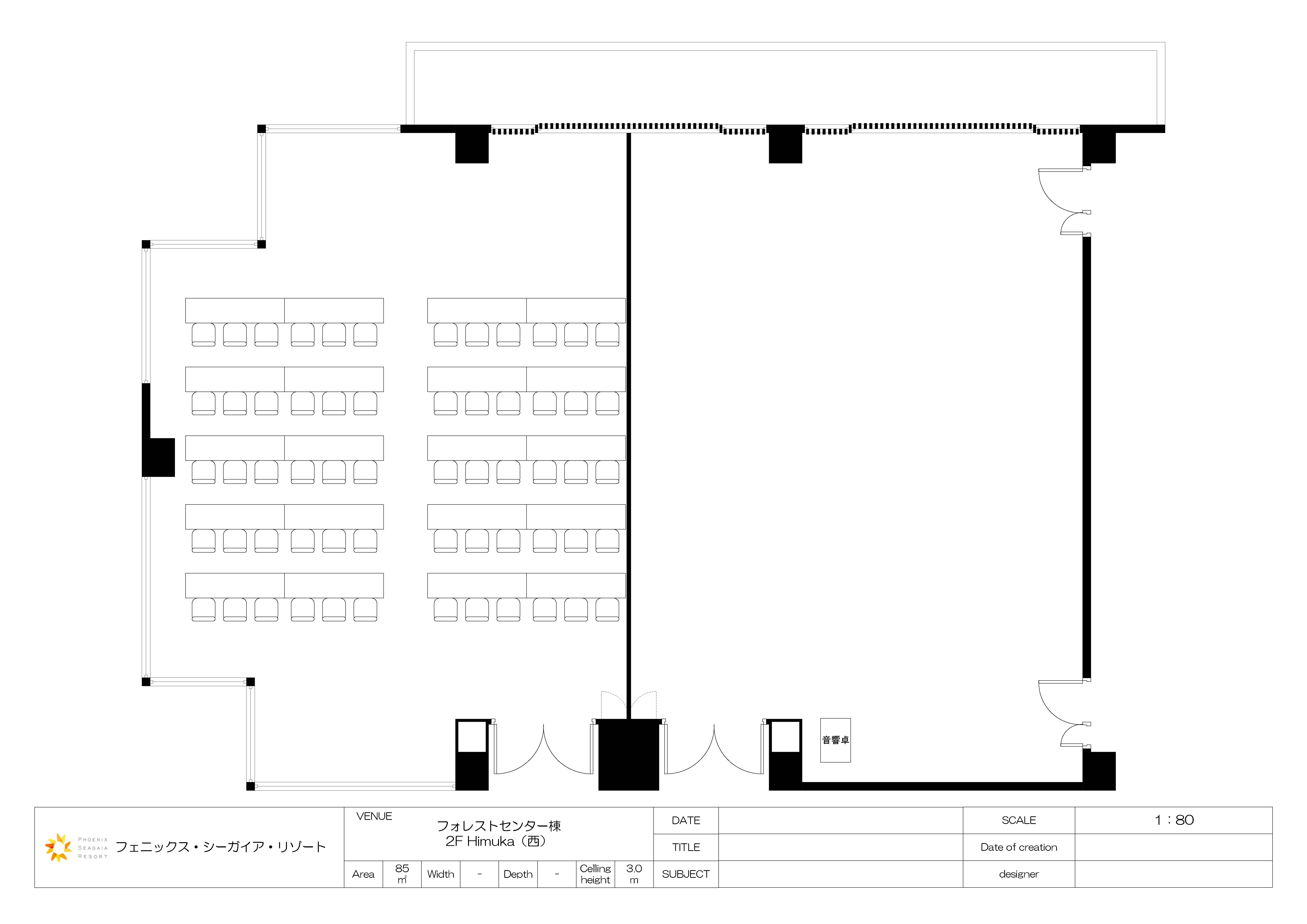 「Himuka 1/2 西」は、シーガイア・フォレスト・コテージ センター棟2階の中会議室「Himuka」を1/2に分割した際の西側の会場です。