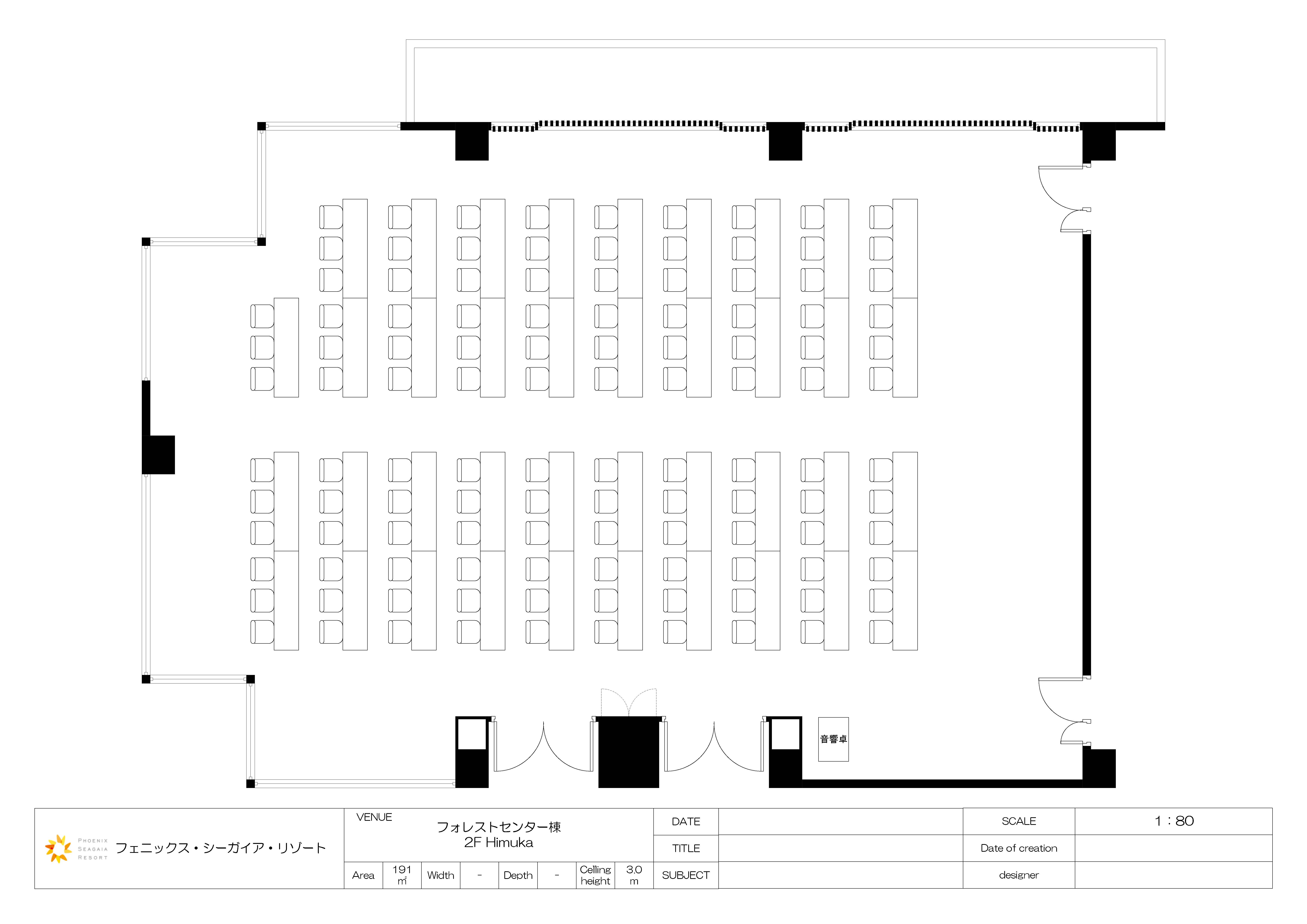 「Himuka:全面」は、シーガイア・フォレスト・コテージ センター棟2階に位置する中会議室です。