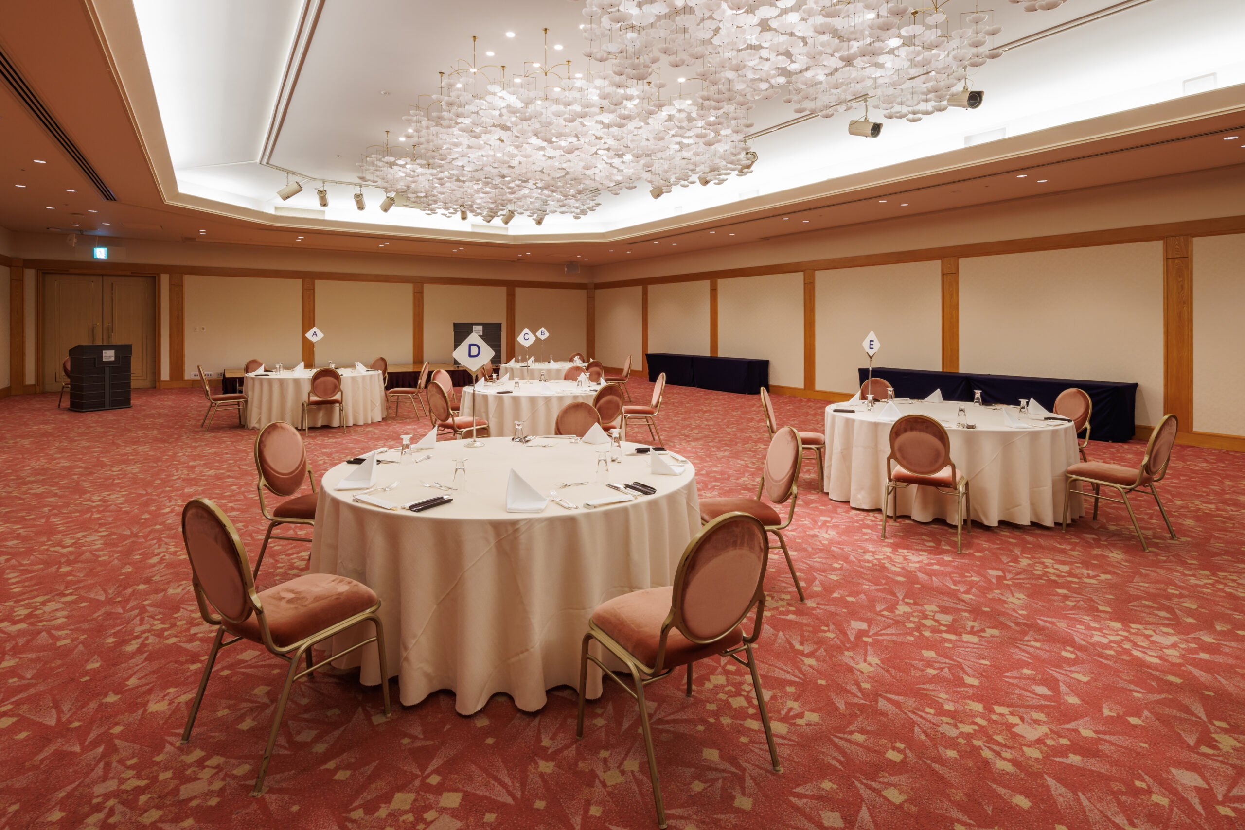 - A. 少人数の会食から最大数百名の大宴会まで対応可能です。会場により収容人数が異なりますので、事前にご相談ください。
